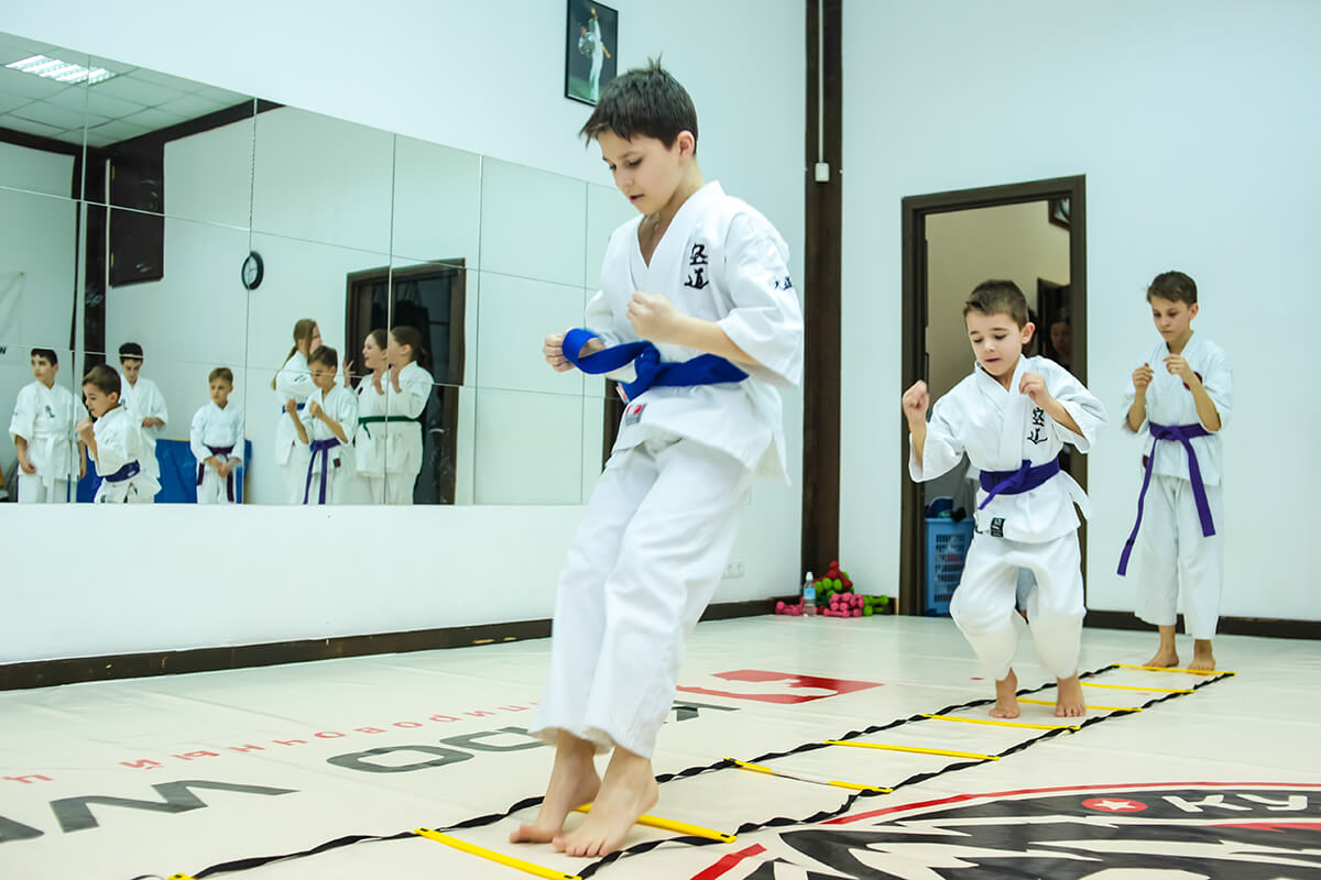 The training process is aimed at the development of muscle, stretching and coordination of young athletes in order to lay the right foundation for positive long-term growth. At this age, students learn their first strike techniques and throws. They can even start competing!